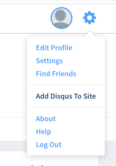 오른쪽 상단 톱니바퀴를 눌러보면 Add Disqus To Site가 뜹니다.
