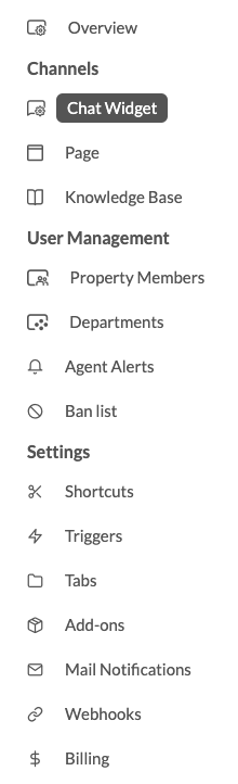 눌러주고나면 이런 카테고리가 뜨는데 여기서 Chat Widget을 들어가준다.
