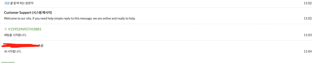 그럼 이렇게 사용자는 관리자와 채팅을 시작하게된다.
