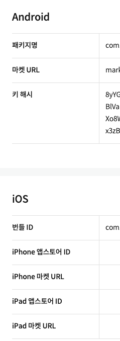 android는 패키지명 등록해주고 마켓 url은 그냥 일단 테스트용이니까 암거나 등록해준다
