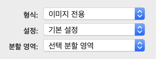 그러고 저장을 눌러주는데 여기서 분할 영역을 선택분할영역으로 선택하지 않으면 내가 자르고자 한 레이어 말고 그외의 레이어들이 같이 저장되 굉장히 복잡해진다. 그러니 꼭 선택 분할 영역을 선택해주자.