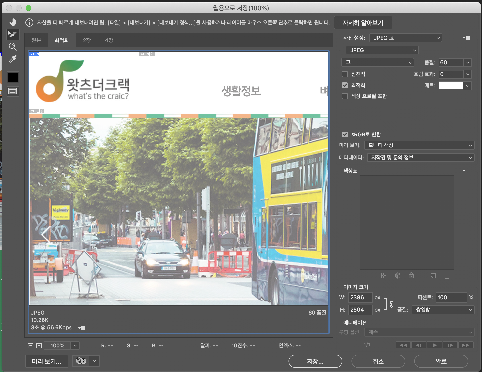 잠깐 여기서 포토샵으로 웹용 이미지를 저장하는 방법을 알아보겠다.