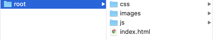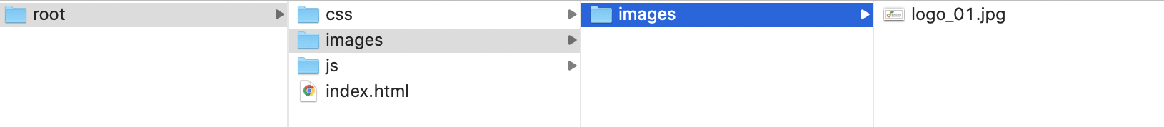 js폴더 안에는 자바스크립트(동작) 파일을, css폴더에는 웹페이지를 꾸며줄 수 있는 css 파일을, images폴더 안에는 img태그나 css의 background태그 등에 쓰일 이미지 파일들(jpg/png/gif)을 넣어둘 수 있다. 특히 포토샵으로 이미지를 자를때 웹용으로 저장을 하면 무조건 images 폴더를 생성하고 만든다.